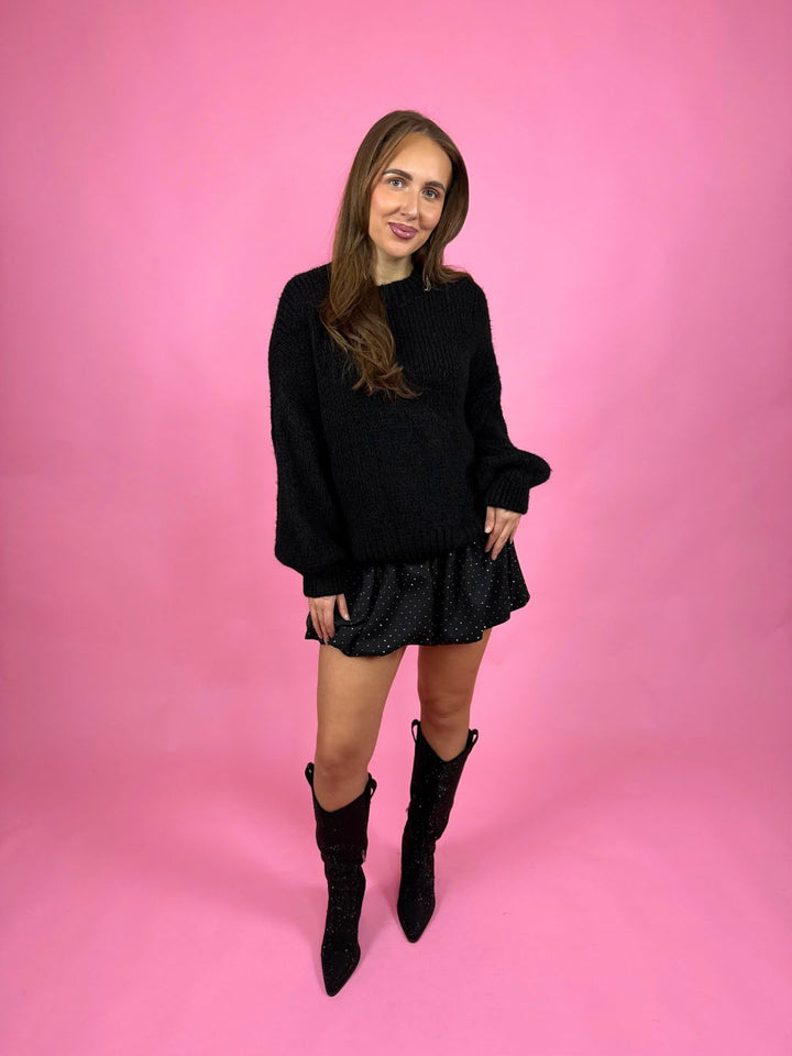 Soft & stylish 🤎 Deze zwarte sweater is zo’n item dat je non-stop uit je kast blijft pakken. Gemaakt van synthetisch wol dat zacht aanvoelt en niet jeukt.