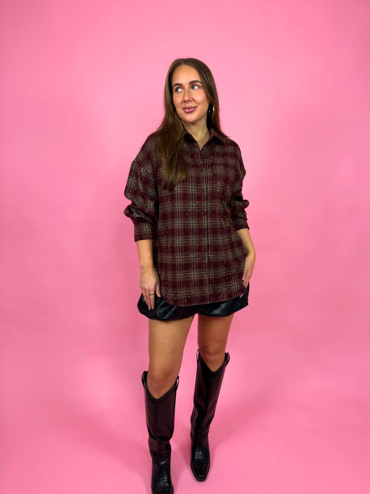 De Dazzle Blouse is waar stoer en girly samenkomen. Deze rode geruite blouse heeft de look van een klassieke houthakkersblouse, maar met een onverwachte twist: subtiele diamantjes die zorgen voor een beetje sparkle in je everyday fit.
