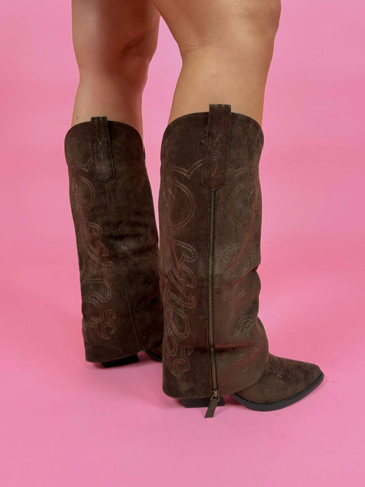 Western vibes, all day 🤎 De Dolly Boots zijn de perfecte mix van suèdelook, cowboystyle en comfort. Met een subtiele hak van 6 cm en een stijlvolle overslag zijn ze helemaal on-trend, zonder te overdreven te zijn.