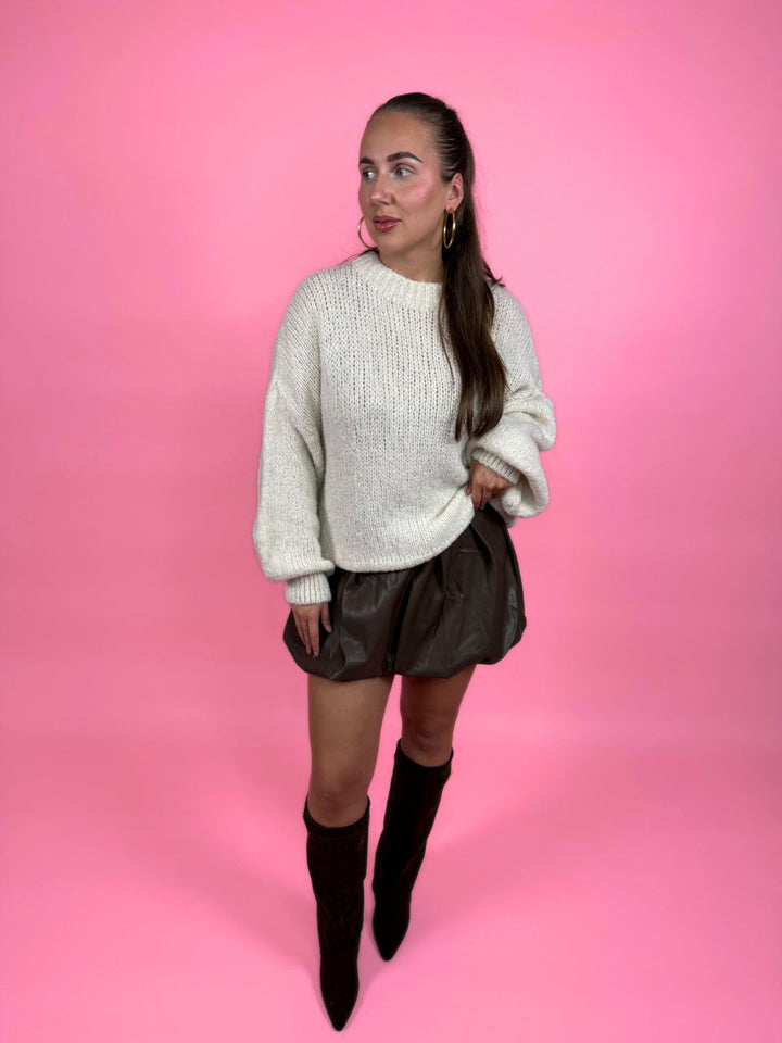 Bold but feminine 🤎 Deze rok is een echte eyecatcher. De balloon fit geeft een speels en vrouwelijk silhouet, terwijl het leren look materiaal zorgt voor een edgy touch. Super trendy en mega veelzijdig.