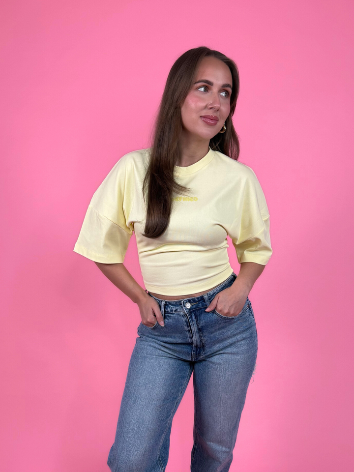 De Redefined Tee is hét t-shirt waar je garderobe op zit te wachten. Trendy én comfortabel – dit item is perfect voor elke outfit. De tee heeft een slanke fit rond het lichaam, gecombineerd met wijde, losse mouwen voor een mooi, stijlvolle touch. Een topcombinatie van vrouwelijk en stoer! Verkrijgbaar in twee maten: S/M en M/L en in de kleuren: Blue en Yellow.